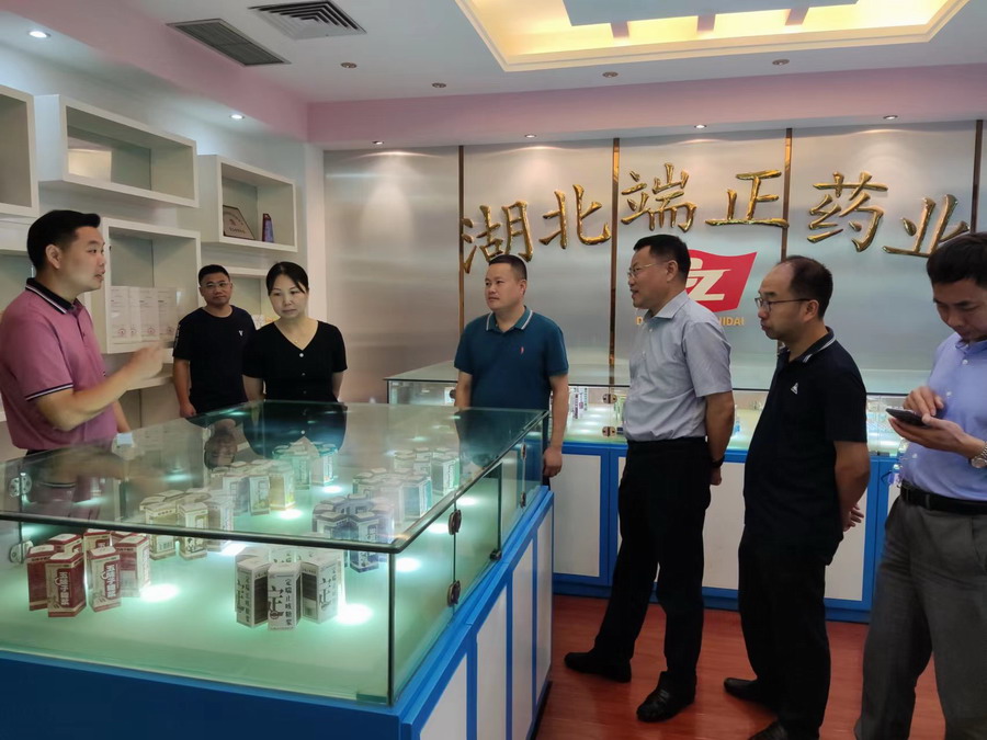 6月22日上午,安陸市人民政府市長黃國威一行到湖北端正藥業(yè)股份有限公司開展“聯(lián)企業(yè)、送政策、解難題、穩(wěn)主體”調(diào)研指導(dǎo)。 黃市長等領(lǐng)導(dǎo)在企業(yè)負責(zé)人